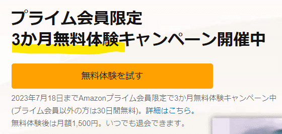 ✅ プライム会員なら3ヶ月無料のキャンペーンなども